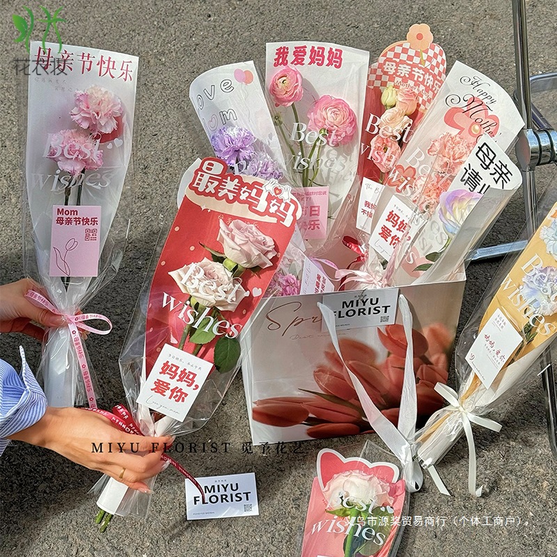 母の日シングルブーケ包装袋ストレートフラワーバッグフラワーペーパーバッグフラワーアレンジメントフラワーアート手作り卸売材料