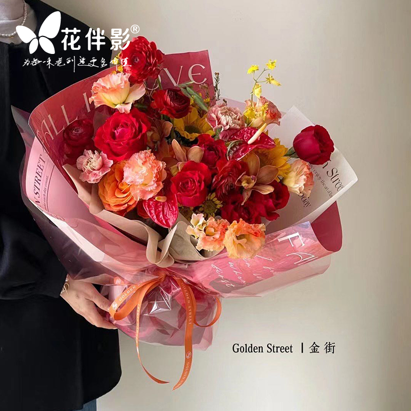 新品防水セロファンギフト花束材料生花透明ネットレッド英語oppシンプルロールアップバレンタイン