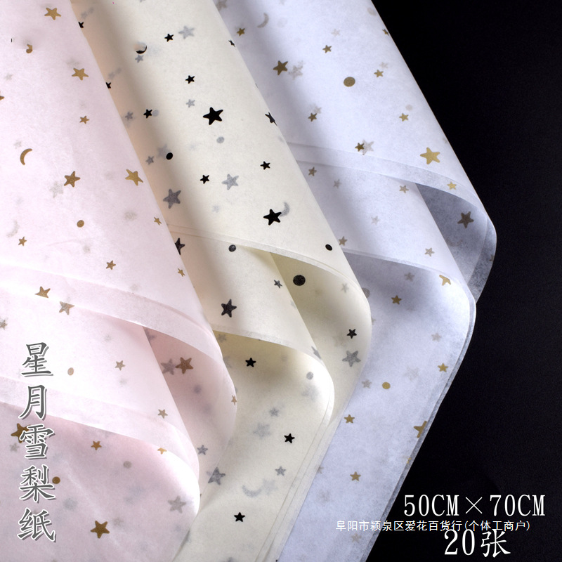 韓国式輸入箔押し星月雪梨紙質感ケーキ内張り花束花芸花屋花包装材料紙