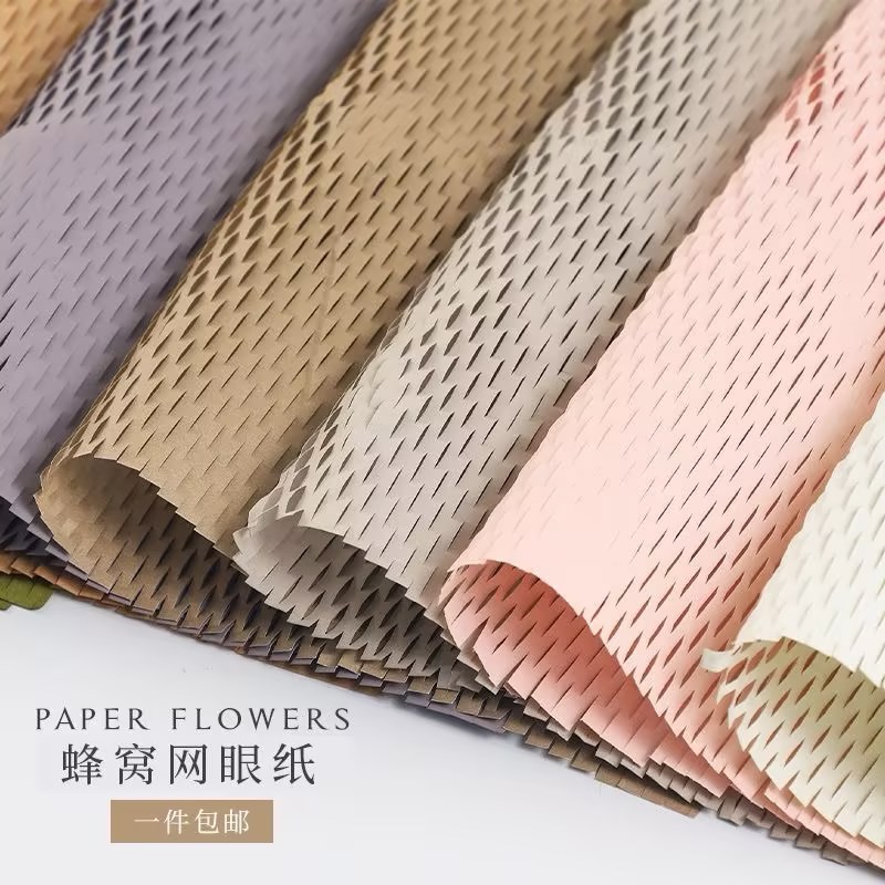 フラットハニカム紙フラワーギフトクラフト紙カラーグリッドメッシュティアオフ緩衝エクスプレス包装紙