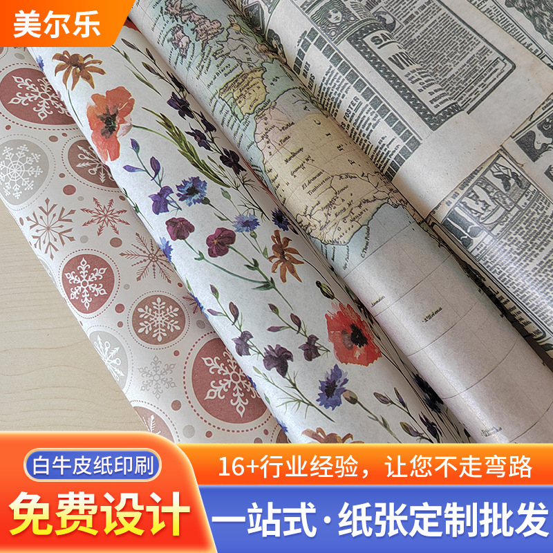 メーカー卸売り多色包装印刷コピー用紙カスタム多色ギフト包装紙単光白牛皮