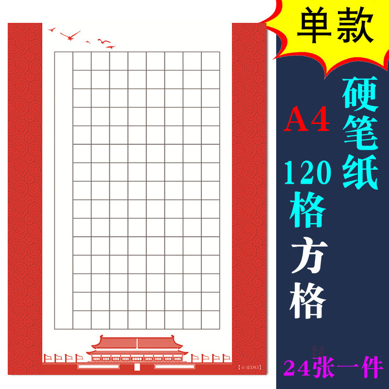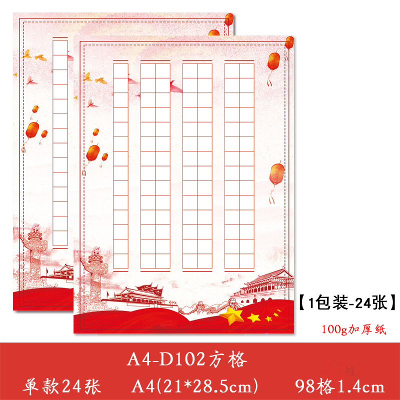 A4中国紅テーマ硬筆書道紙120格方眼ペン作品紙試合専用紙古詩語d83