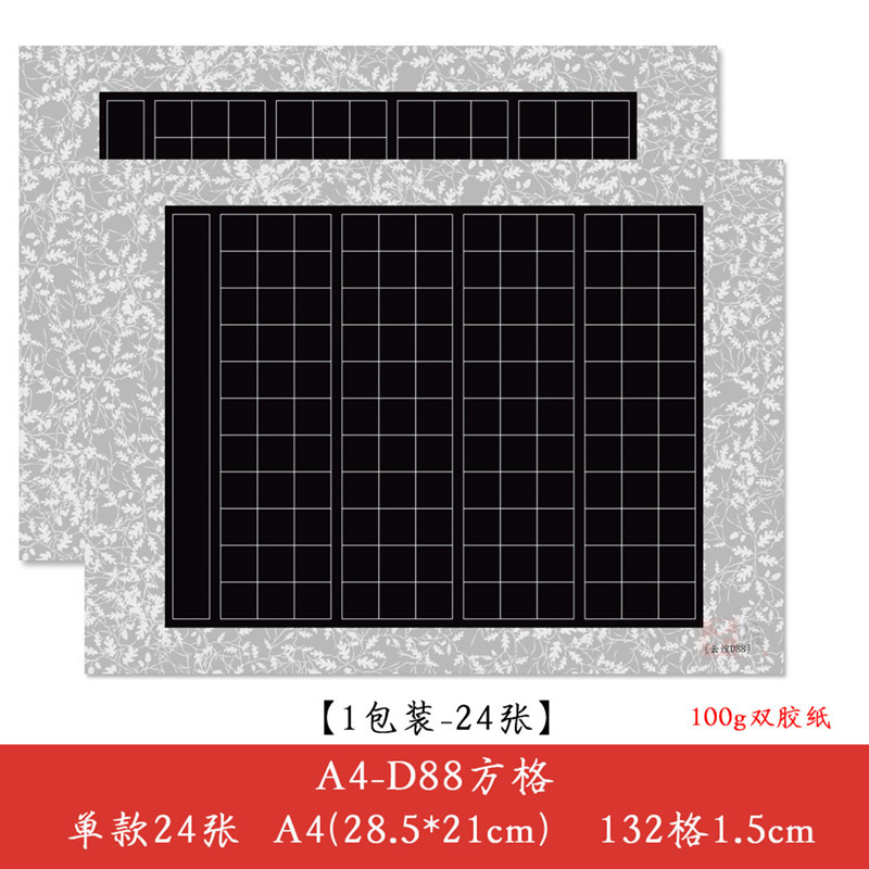 A4硬筆書道紙ペン作品練習紙試合紙方眼黒黒地132格24枚厚さd 88