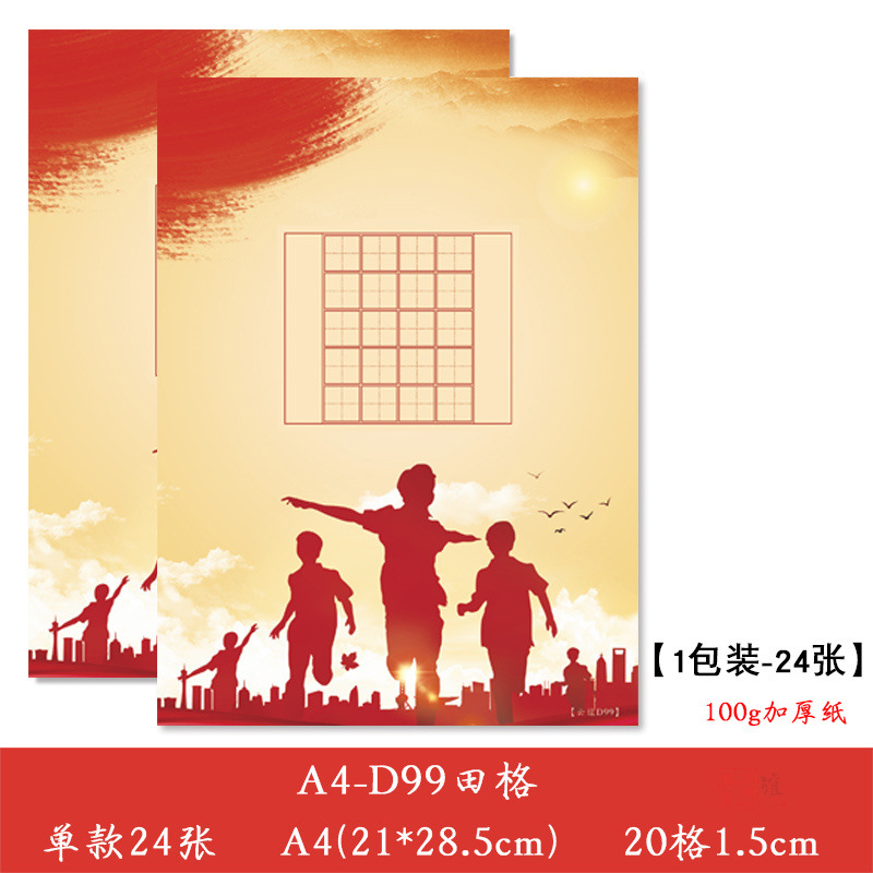 A4赤い中国風テーマ風作品紙硬筆書道紙20田字格米字格試合国運d 99
