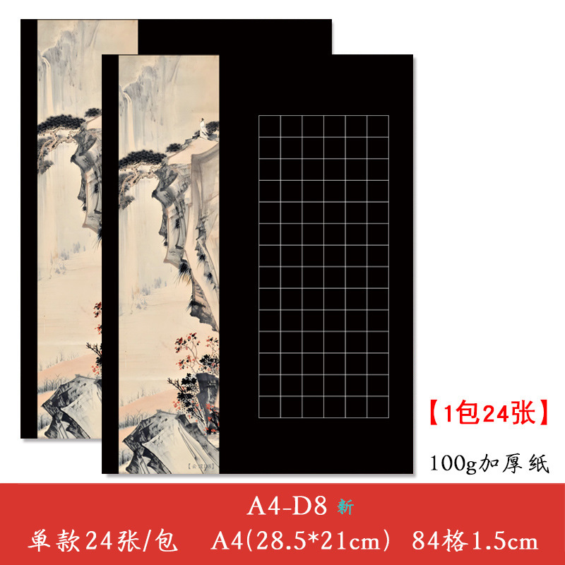 A4硬筆書道紙作品紙試合専用紙方眼黒白字黒底紙100g厚さ84格d8