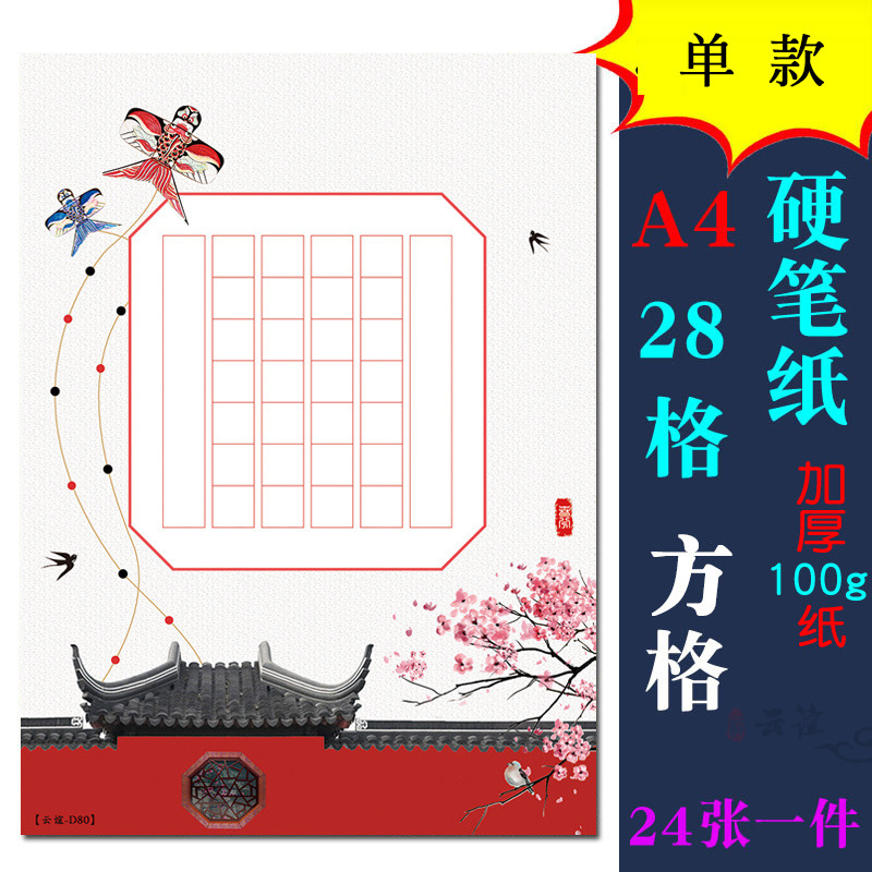 A4硬筆書道紙田字格競技専用30格作品漫画五言七言厚手硬筆紙d 46
