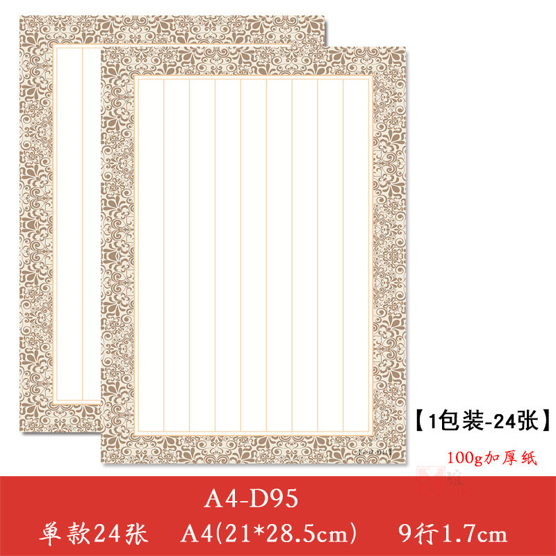 A4硬筆書道紙模造古便箋中国風行書縦線9縦条厚さ100g 24枚の赤い線d 95