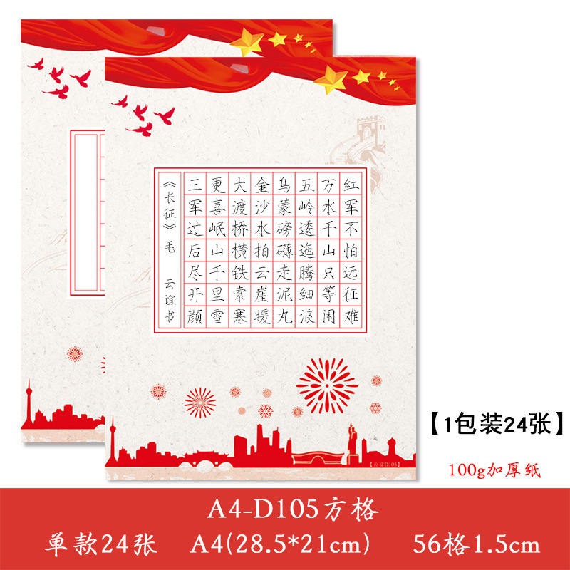 A 4田字格硬筆書道紙紙本50格律詩古詩五言律詩厚厚紙モデルd 36