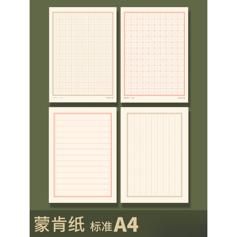 モンケン紙専門の硬筆書道紙. 方眼. 田字格米字格横格縦格カーキ色赤色