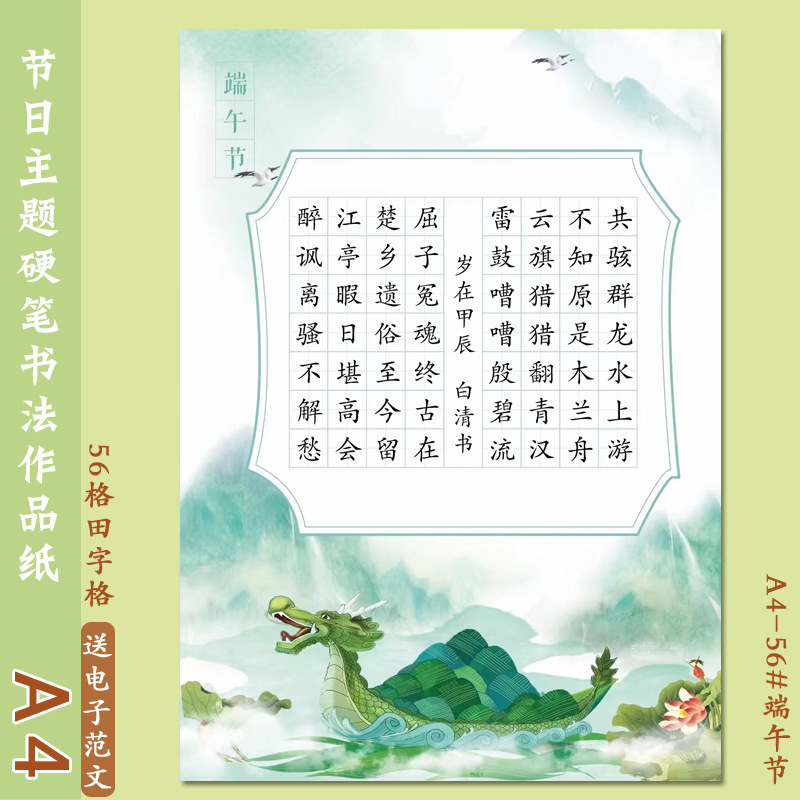 A4硬筆書道作品紙端午の節句の日テーマ学校活動筆記試合56格田字格書写紙