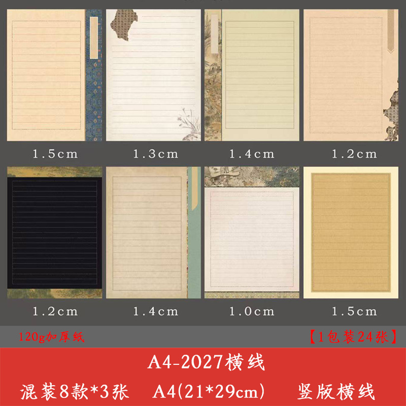 A4 硬ペン書道専用紙 ペン硬ペン書道作品紙 行書 草書 横線 中国風 中国展創作紙