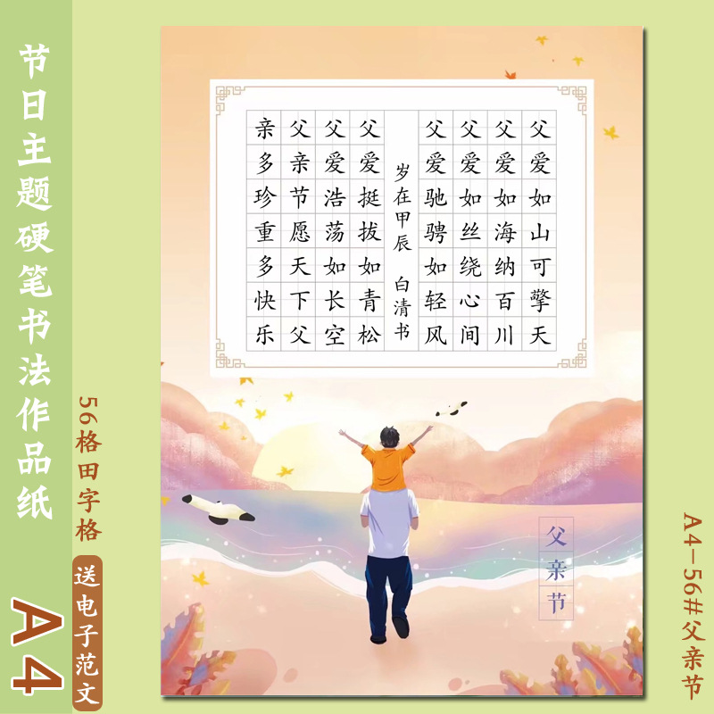A4硬筆書道作品紙父の日テーマ学校イベント感謝書コンテスト56格田格書