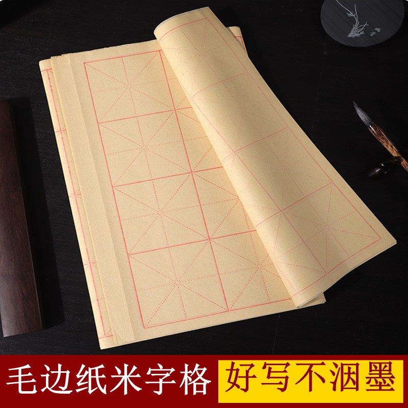メーカーのラフエッジ紙、米字模様の書道練習用紙、半生半熟初心者用、インクにじみにくい毛筆書道練習用紙
