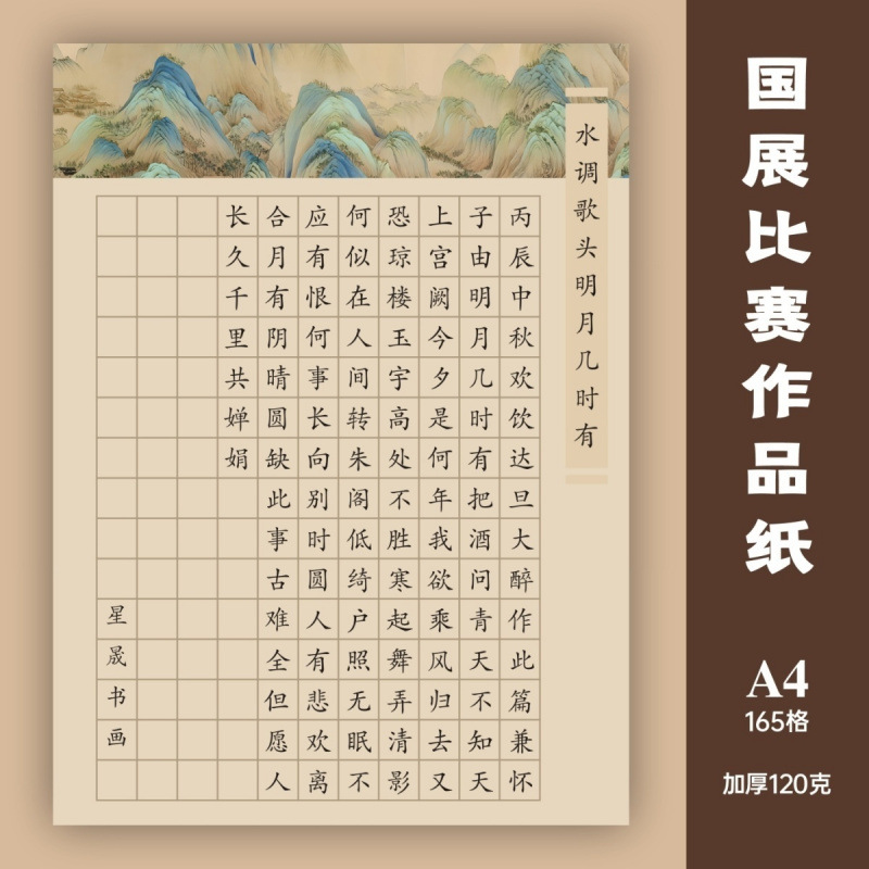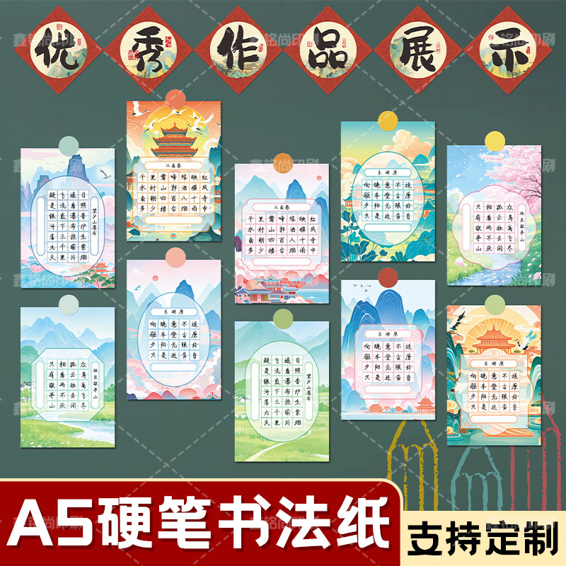 硬筆書道作品紙中国風田字格書写紙小学生古詩詞絶句試合展示壁貼り