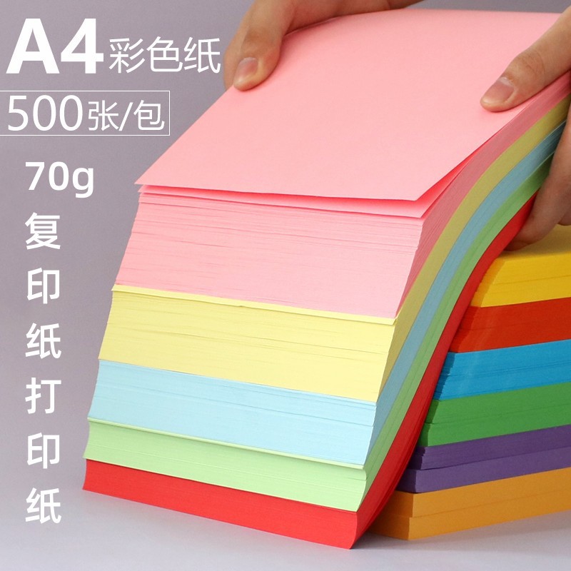 A4色纸500枚深黄色プリントコピー用纸赤橙薄黄青紫ピンク70g子供手作り折り纸
