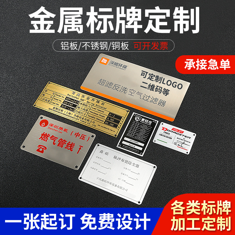 金属銘板カスタム鉄銅亜鉛合金メッキ銘板ハイライトアルミステンレス腐食印刷銘板