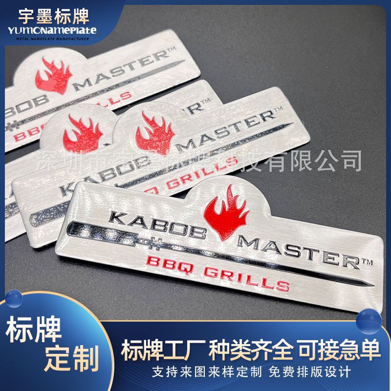 金属アルミニウム材質銘板香水ワインマシン銘板卸売りロゴ平面印刷凸字3mゴムラベル