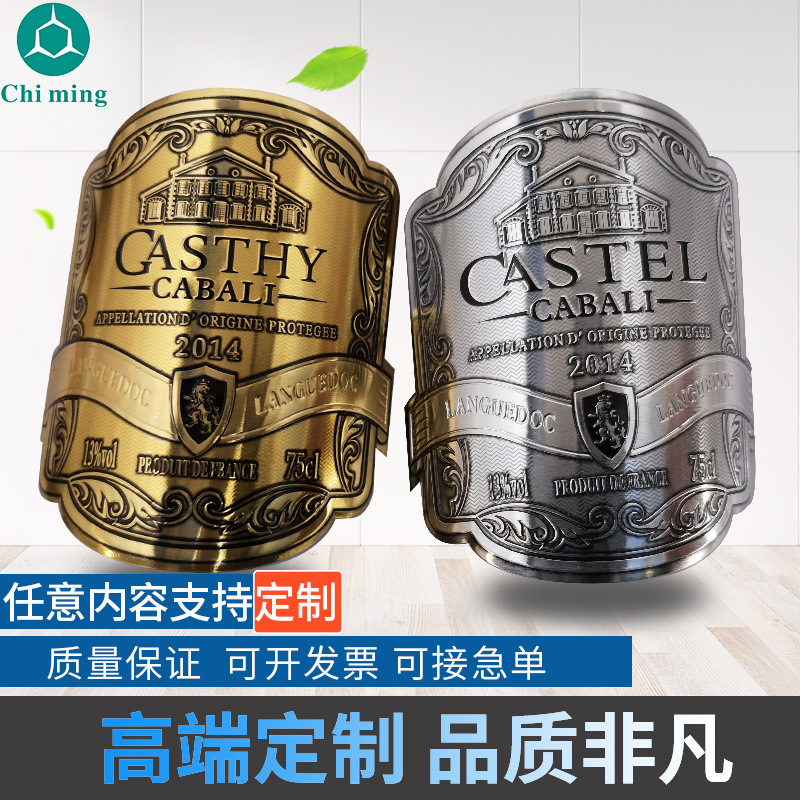 酒標白酒赤ワイン瓶銘板金属凹凸ダイカスト立体アルミ銘板銘板各種酒標カスタマイズ