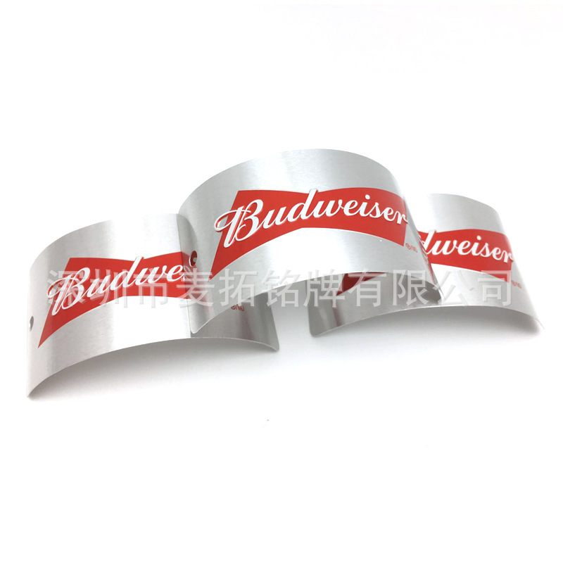 メーカーがカスタマイズしたアルミのテープ付き看板鏡面伸線酒水ブランドのボトル金属看板はロゴを決めることができる