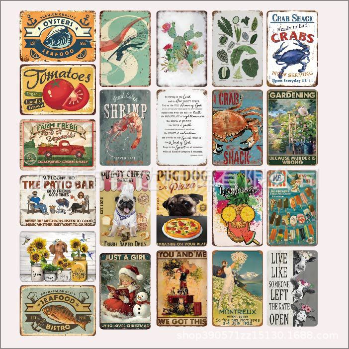 レトロなブリキ絵画シーフードヨーロッパとアメリカのレトロなホームハンギングメタルクラフト外国貿易バー装飾絵画