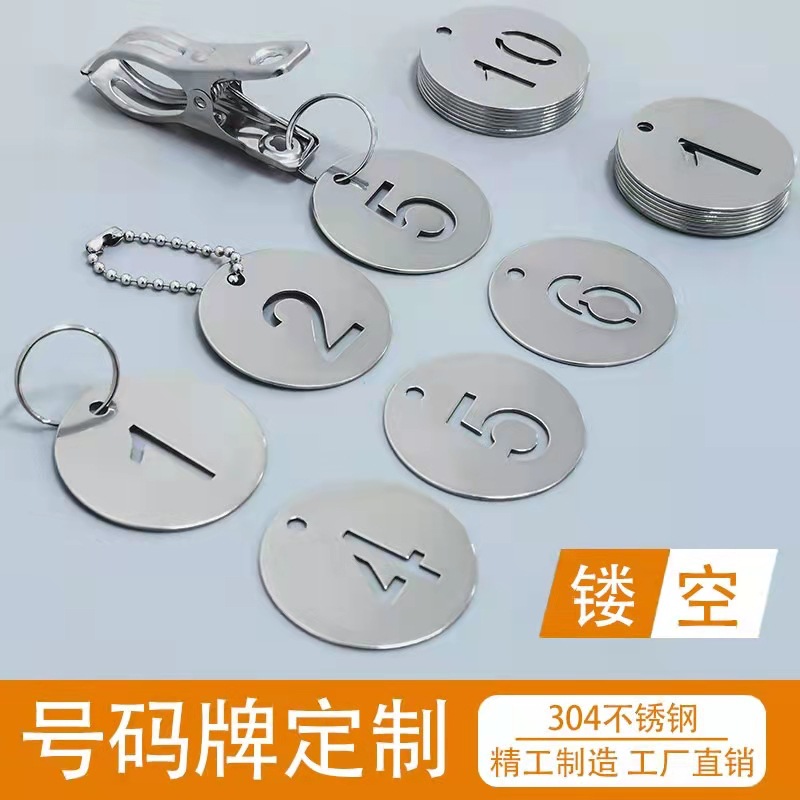 新型透かし彫りステンレス30mm番号札円形札デジタル吊り札番号麻辣热番号札幼児