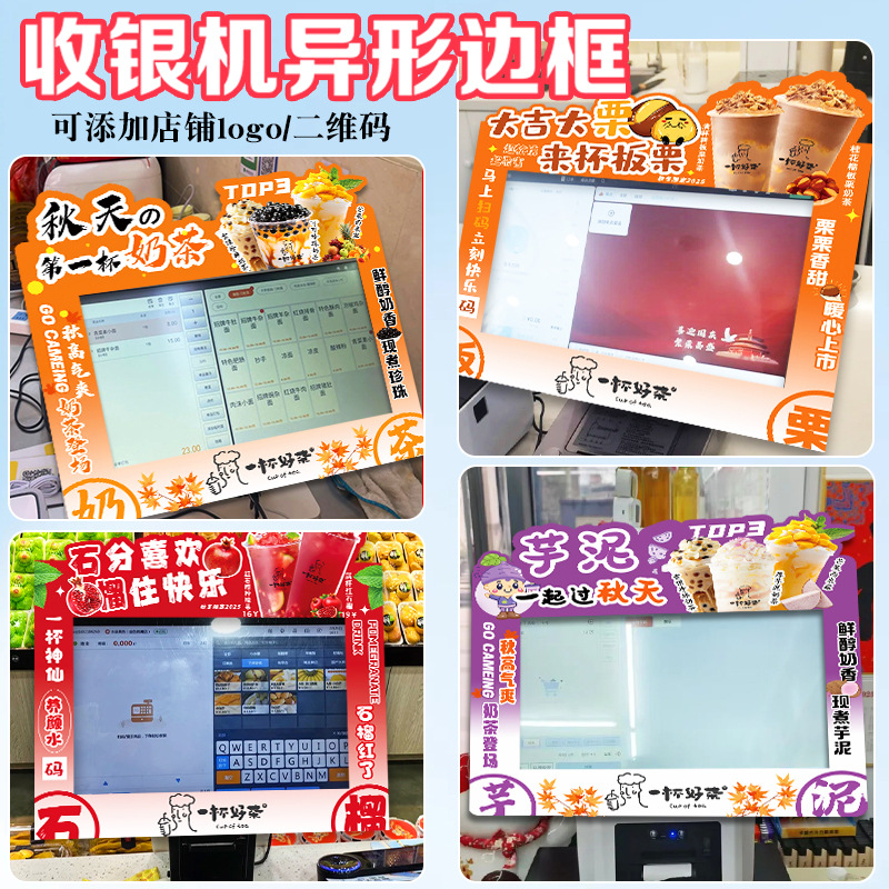 ドリンク特殊形状レジボーダーカスタムプロモーション看板デザインディスプレイフレームデザートスクリーンボーダーカスタムメイド