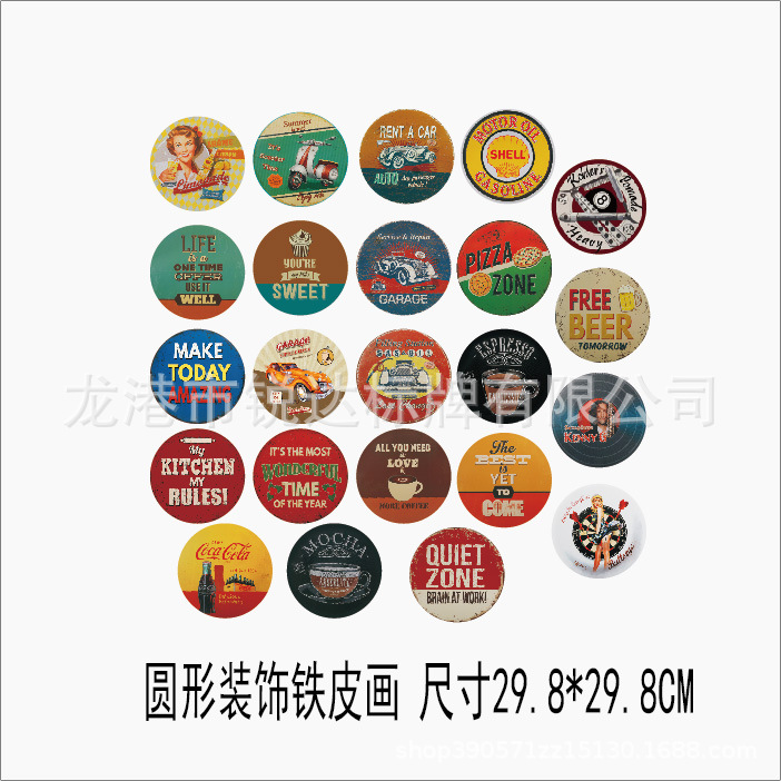 工業風円形ブリキ画レトロレトロ鉄芸ナンバープレート創意ミルクティー店カフェ掛け絵店舗壁貼り