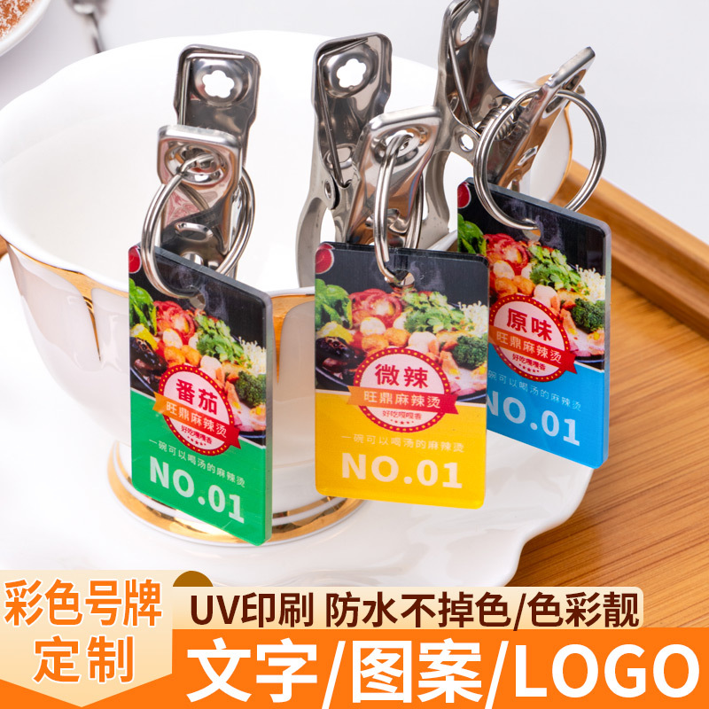 アクリルの数字番号札のレストランの麻辣热は号の手の札のホテルの入浴するお風呂のベルトのクリップの番号を叫んでカスタマイズします。