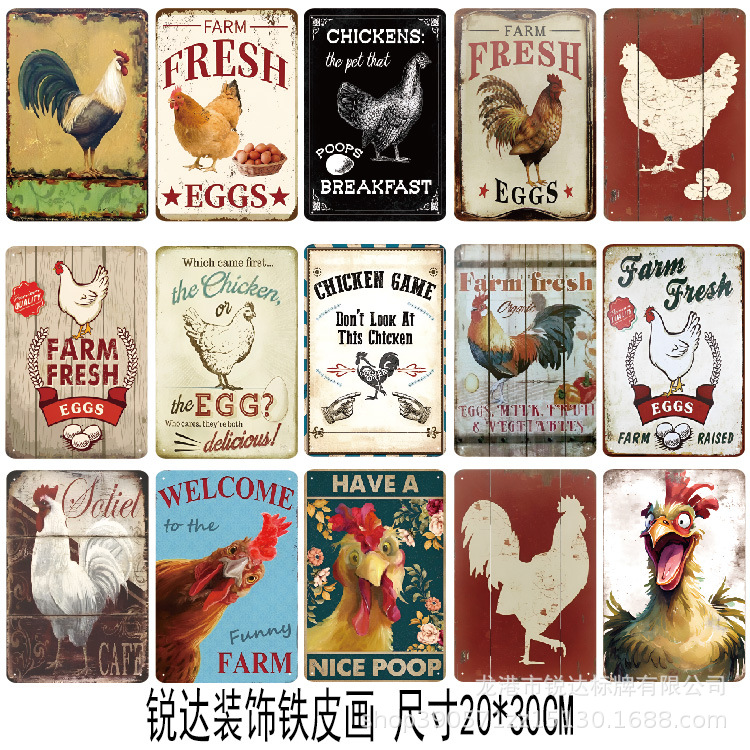 アメリカのレトロな鶏の鉄の皮は懐かしい家庭のミルクティーを描いて店の動物の壁のアイデアの装飾品を焼きます。