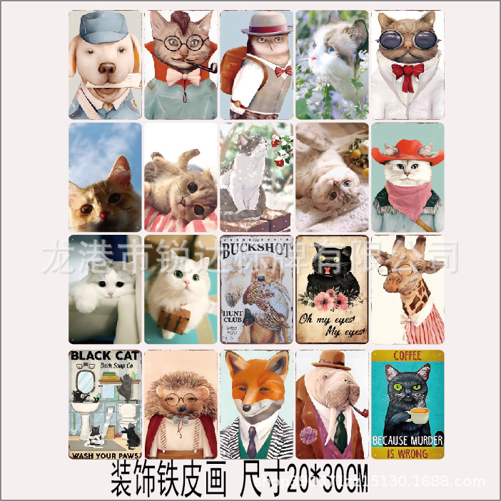 レトロ壁掛けバー装飾画動物屋外鉄牌ブリキカフェアイスクリーム店壁面ブリキ画