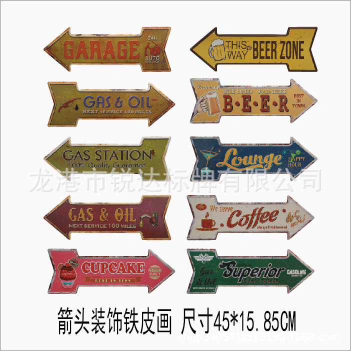 工業風矢印ブリキ画レトロレトロ鉄芸ナンバープレート創意ミルクティー店カフェ掛け絵店舗壁貼り