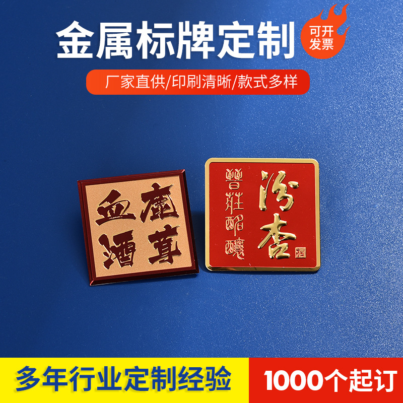 金属酒バッジ凹凸銘板プレス包装箱銘板製作白酒銘板赤ワイン銘板ロゴ