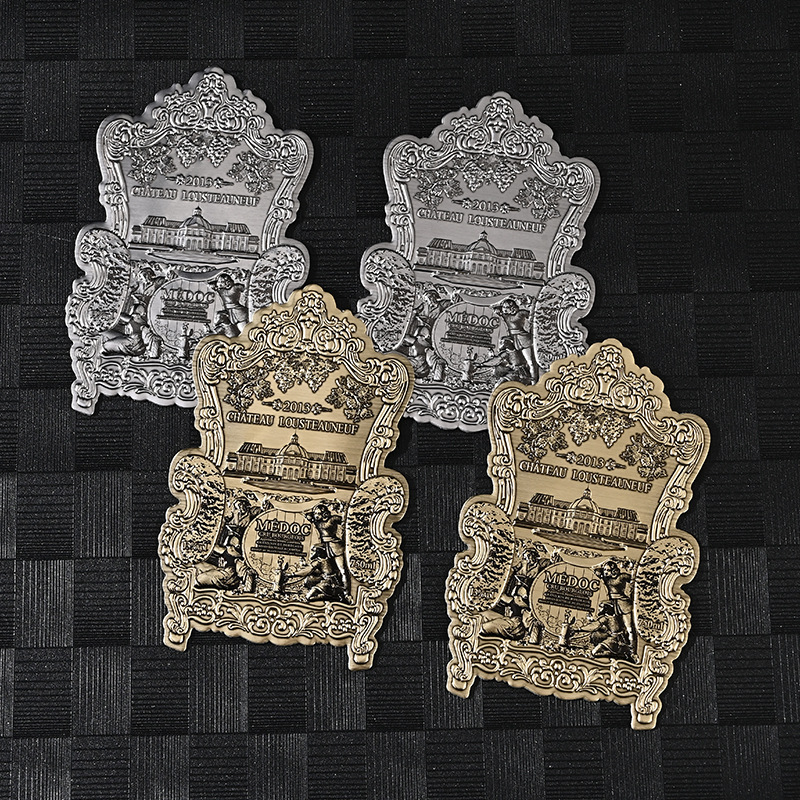 アルミ製印刷プレスワイン赤ワイン瓶ラベルラベル亜鉛合金ダイカストメッキ塗装ラベル