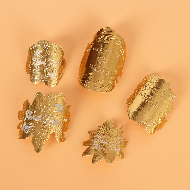 金属製香水アルミ銘板、ガラス瓶化粧品アルミ製アロマ銘板、ワイン銘板、茶葉ギフトボックス銘板のカスタム製作