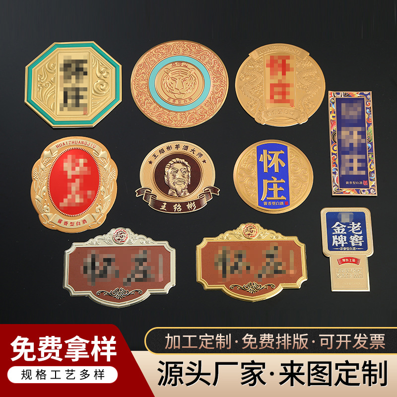 酒標アルミブランド印刷プレス赤ワイン金属ラベル白酒商標各種ボトルラベル作成ロゴ