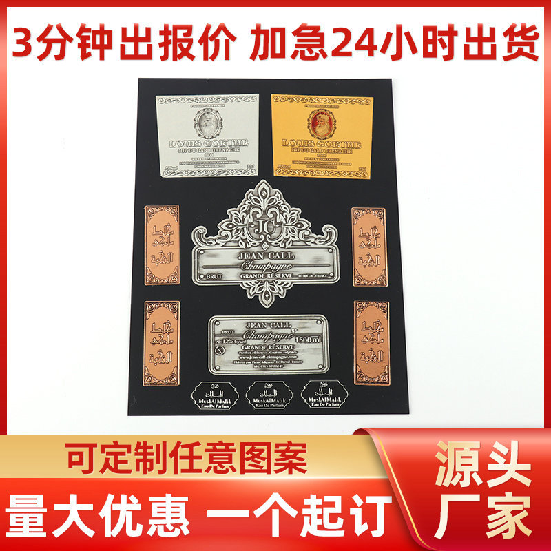 金属銘板香水ガラス瓶銘板プレス凹凸アルミ銘板赤ワイン射出メッキ酒銘板銘板
