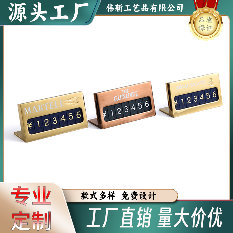 高級無料カスタム価格ブランドラベル白酒茶デジタル価格ブランド金属ラベル展示ブランドF53