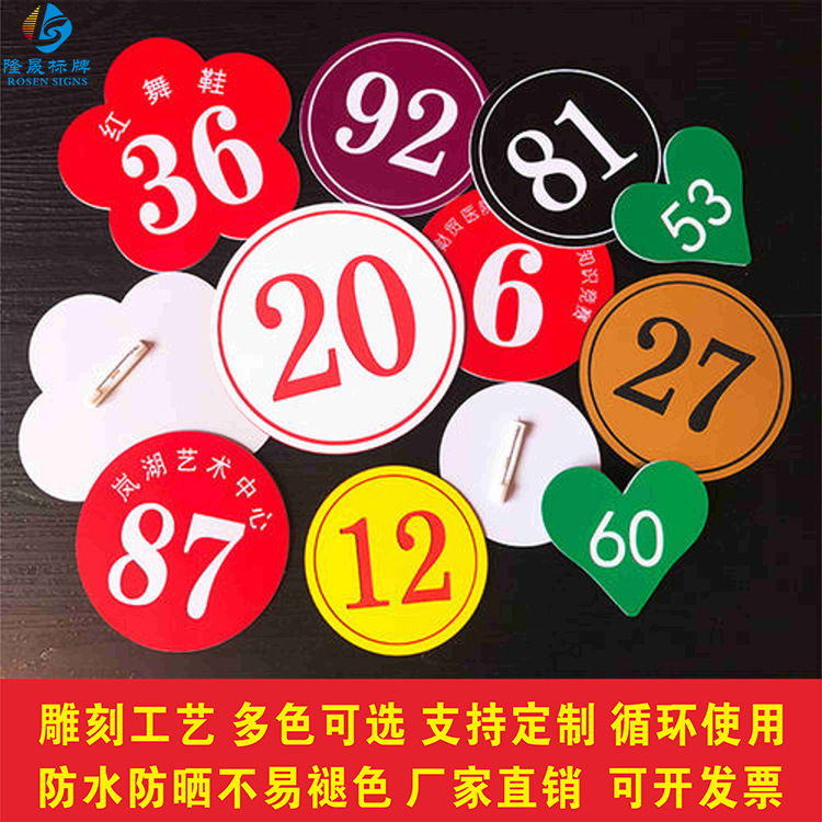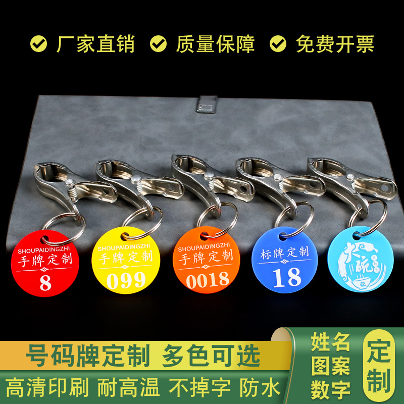 アクリルの数字番号札のレストランの麻辣热は号の手の札のホテルの入浴するお風呂のベルトのクリップの番号を叫んでカスタマイズします。