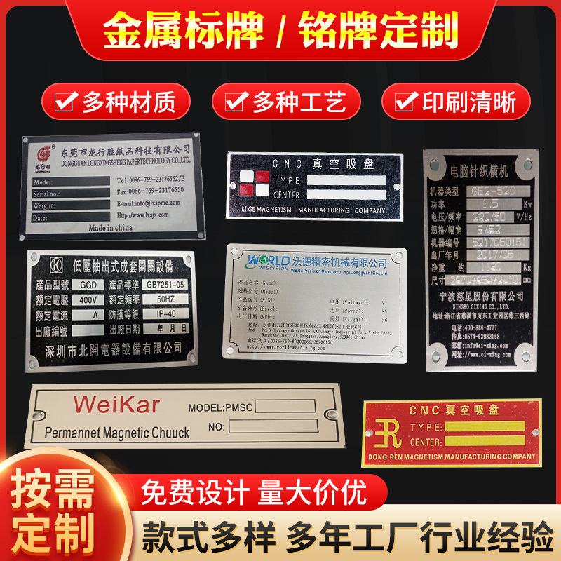 家具用金属標識のカスタム、高光沢プレス加工ステンレス銘板、機械設備安全標識の特注製作