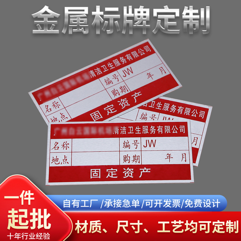 金属標識のカスタム、高光沢シルク印刷ステンレス銘板、プレス加工合金アルミプレート、家具識別用金属標識