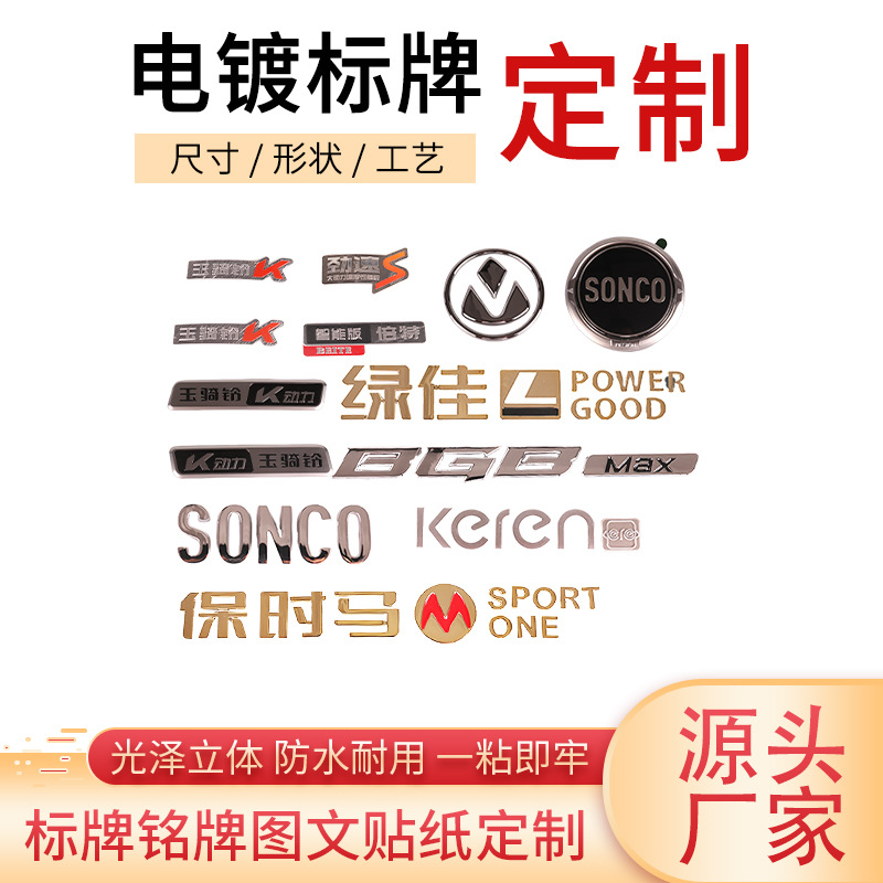 ABSプラスチック電気自動車標識メッキアルファベット数字自動車標識ニッケル標識金属不乾性ラベルlogo