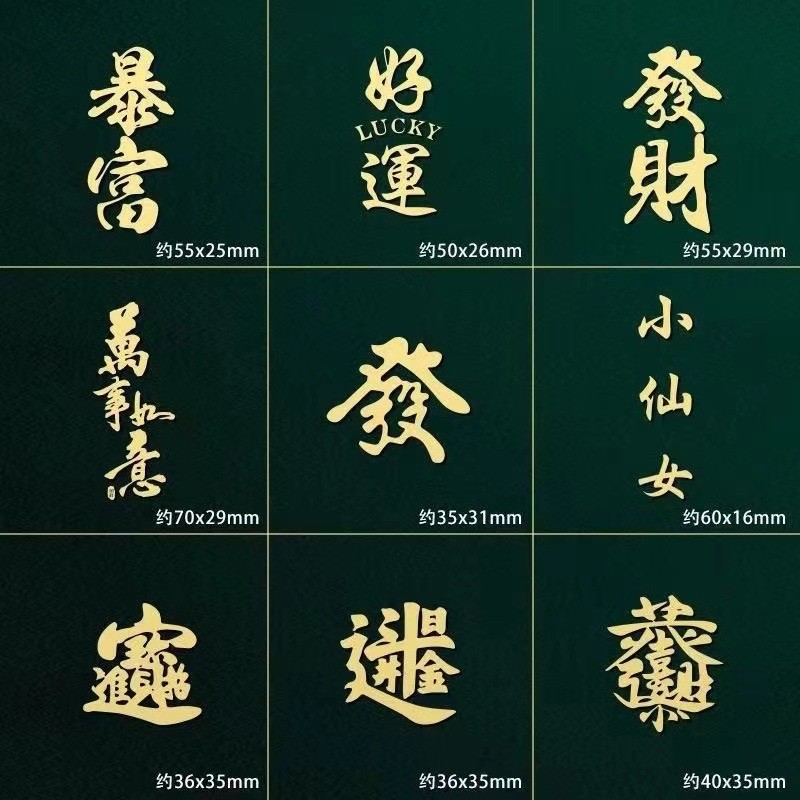 中国のパーソナライズされた金属漢字装飾縁起の良い幸運と富のテキスト幸運と富の携帯電話金属ステッカー