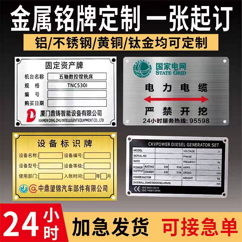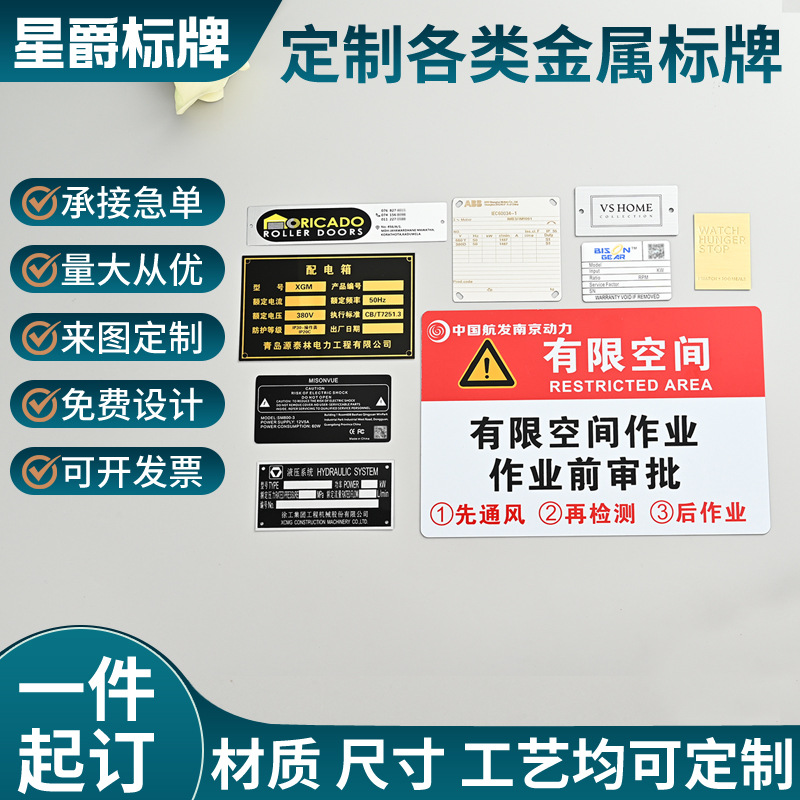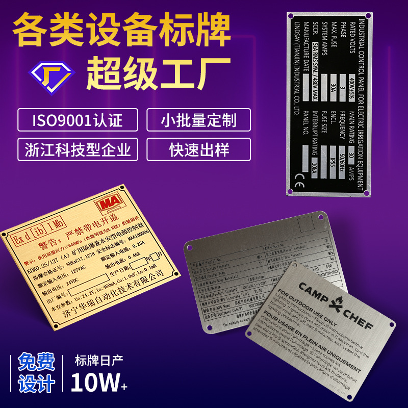 金属標識、家具のカスタム、ステンレス銘板、電気メッキ、シルクスクリーン印刷、高光沢プレス加工、機械設備、アルミ標識の特注製作