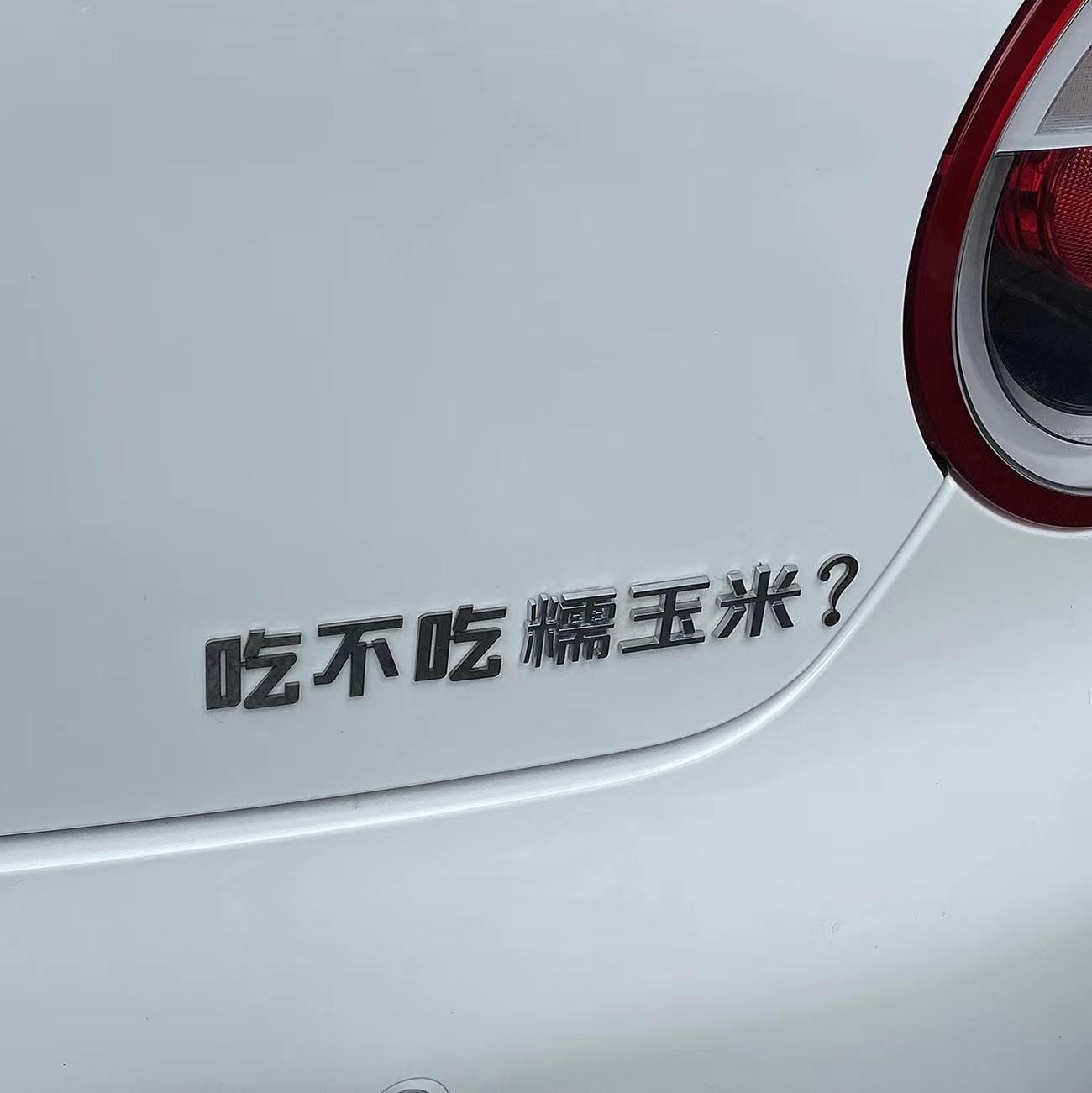 食べませんか?モチモチトウモロコシの立体個性的な車の標識の創意ネットの赤い車はクロムメッキのもとの標識と同じ材質を貼りますか?