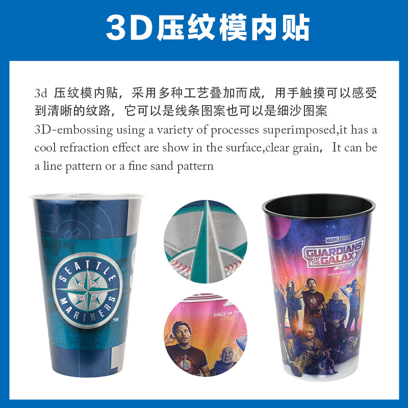 エンボスインモールド PP 射出成形カップ ミルクティーカップ フィルムインデカールフィルム シネマポップコーンバケットラベル
