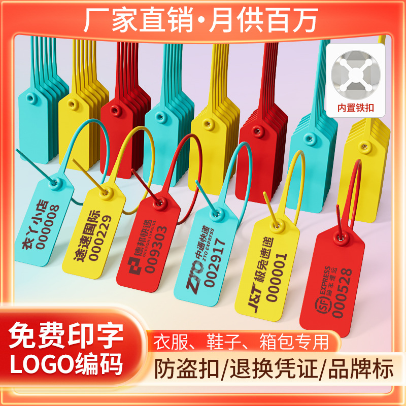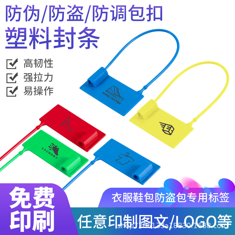 使い捨てのプラスチックのシールの靴は服の偽造防止のつり札の盗難防止のラベルを掛けます。