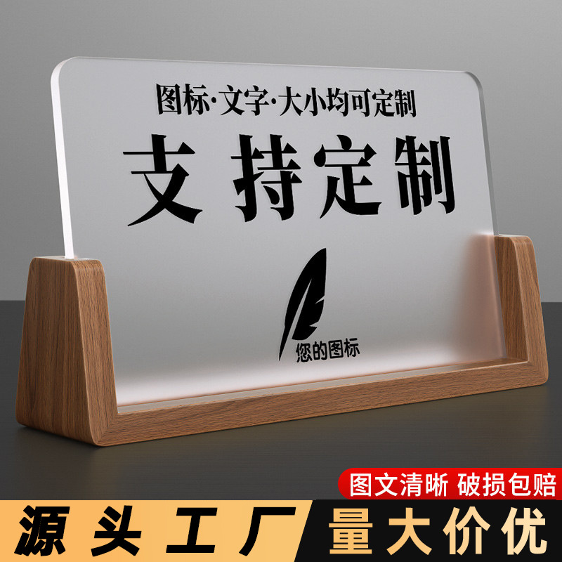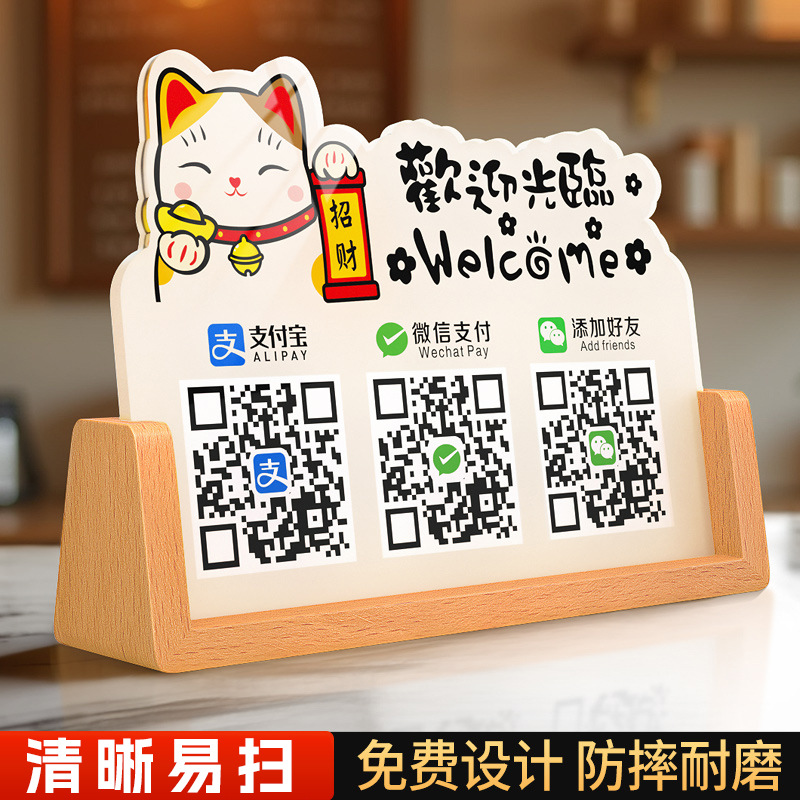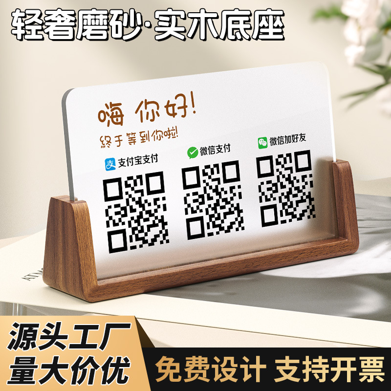 アクリル二次元コード台カード入金コード展示カード業者のデスクトップ立札木製ベースにクリエイティブテーブルカードを置く