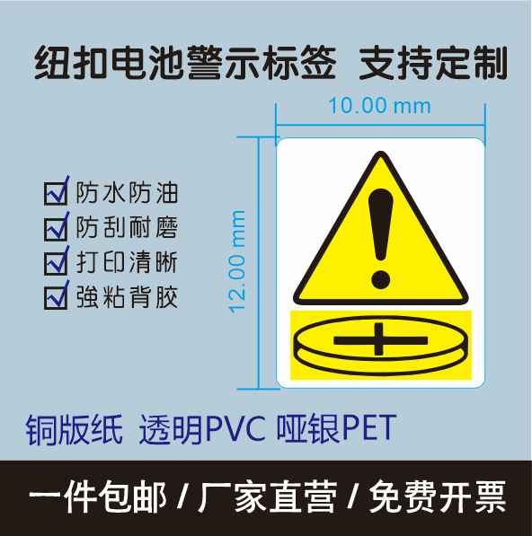 アマゾンボタンバッテリー警告ラベルPETダミー銀ステッカー