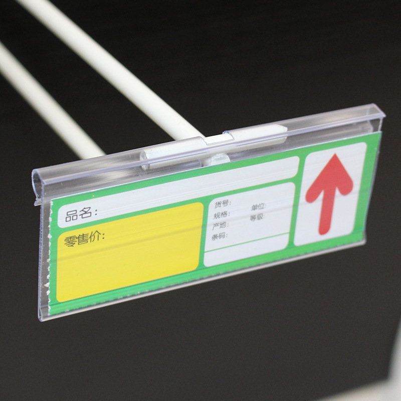 スーパーマーケットの棚の二重線のフックの価格は札のラベルの価格条を下げて透明なプラスチックの価格札を厚くします。