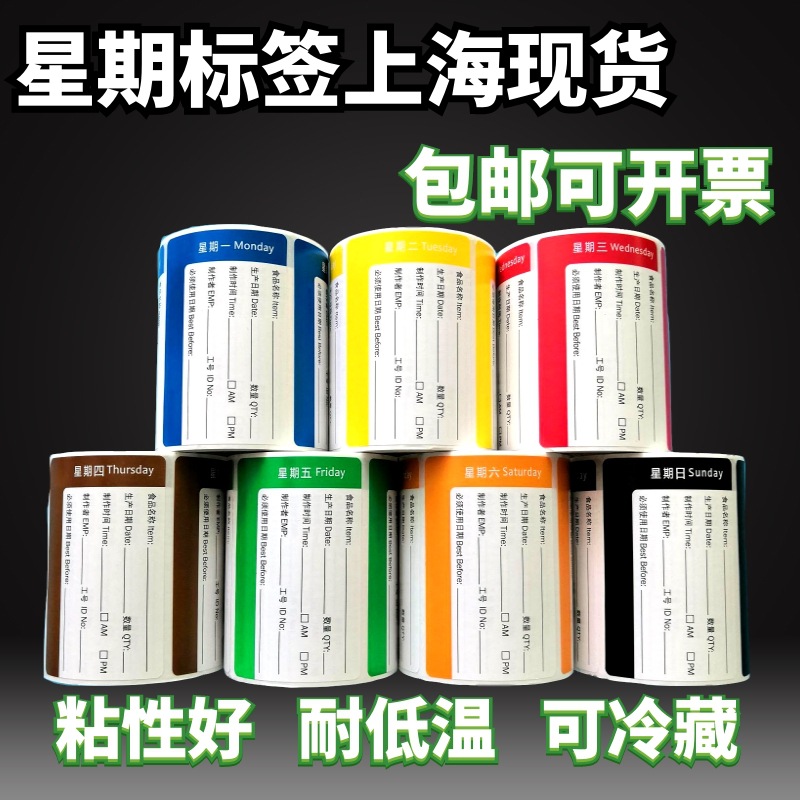 週間ラベルホテル飲食キッチン食品衛生シール上海工場時間日付ラベルスポット
